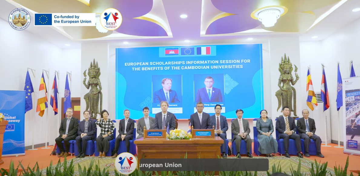 In particular, the Erasmus+ Scholarship Programme, funded by the European Union, provides outstanding opportunities for Angkor University students to participate in mobility programs, undertake studies abroad, and gain exposure to international learning environments.